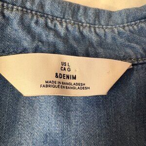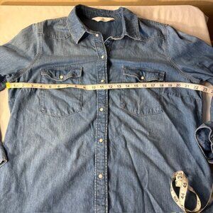 & Denim Western Shirt Dress with Pearl Snap Buttons and Pockets Size Large