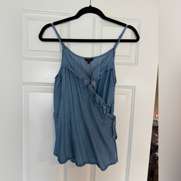 Denim Wrap Ruffle Top - M