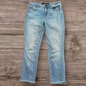🌸 Fall in love with these stunning Denim X Alexander Wash preowned jeans! Crafted with durable imported fabric and made in the USA, these women’s jeans are approximately waist 14” measured flat across the front (28”), 9” rise, 25” inseam and 6” leg opening) offer a chic cropped look with a cool faded, distressed vibe. Has distressed hem.