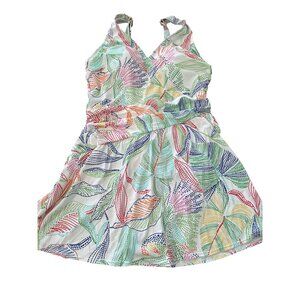 Denim and Co Beach Petite V Neck Ruched Waist Swim Dress Size 8P Multi Parrot