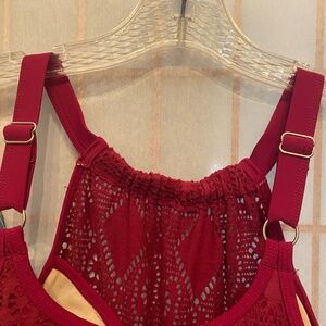 Denim and Company NWOT TWO PIECE raspberryDouble lined lace topAttached skirt