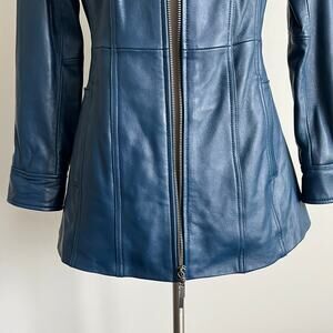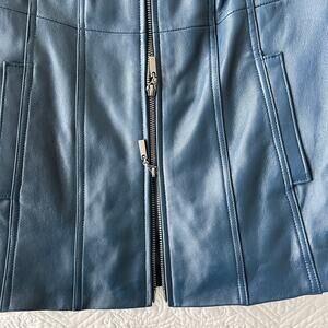 Denim and Company d & co. Blue Leather Jacket Mock Neck Two Way Zip XXSP
