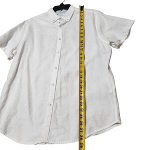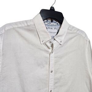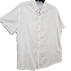 Denim and Flower Linen Shirt For Men Size Large White Short Sleeves Front Button