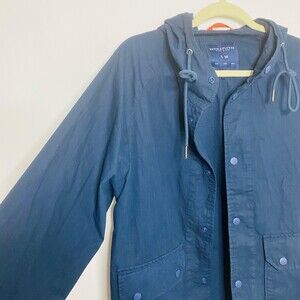 Denim and Flower Ricky Singh Navy Blue Snap Buttons Cotton Hooded Jacket Sz S