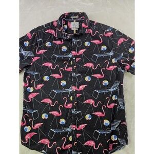 Denim and Flowers Men's Large Slim Fit Ricky Singh Flamingo Beach Shirt
