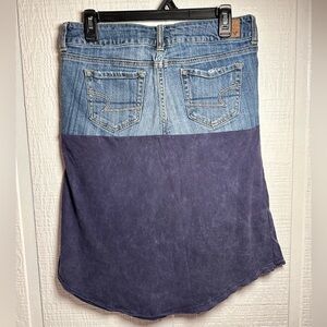 Denim and blue Skirt up cycle light acid wash distressed handmade