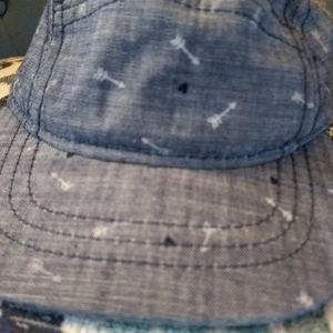 Denim baby hat 0-6 months with arrows. Might pair nice with the denim guitar outfit 😍 bundle together and let's talk 😏