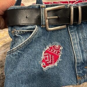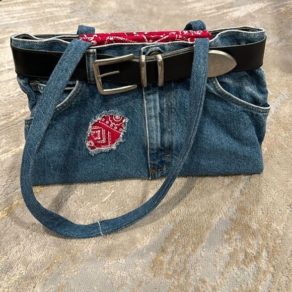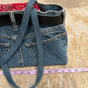 Denim bag made out of real jeans with bandana lining and real belt magnetic clos