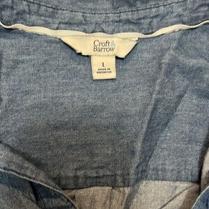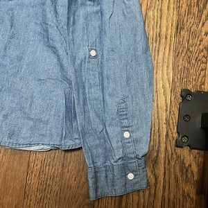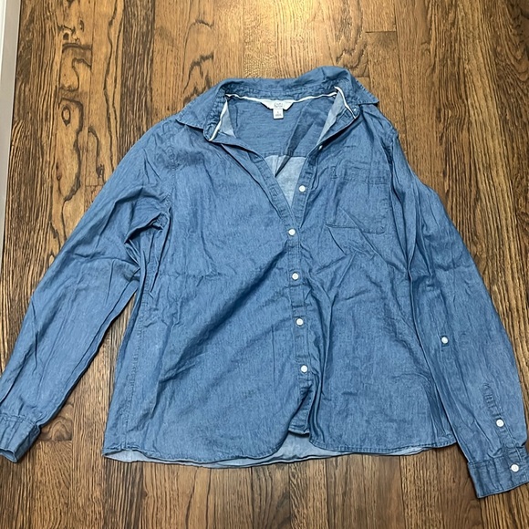 Denim button up. Worn a few times. Has the option to make sleeves 3 quarters. No rips or tears. Smoke free home!