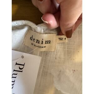 Denim by Ellison Cotton Top White Colorful Splatter Women's Medium Shoulder Knot