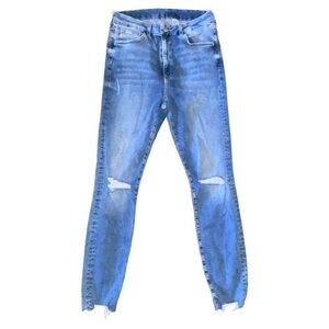 & Denim by H&M Womens 31 Lt Blue Skinny Jeans High Rise Distressed Ripped Denim