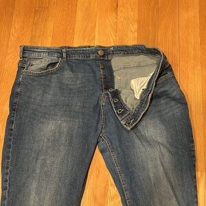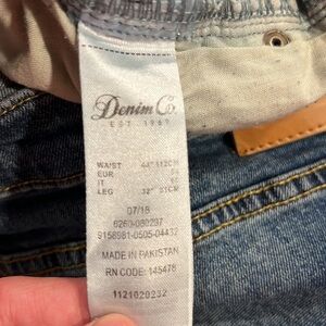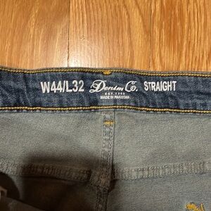 Denim company button fly straight leg jeans size 44W32L. Preowned in gently worn condition. Bin p