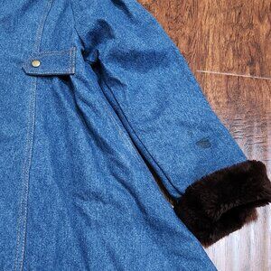 She's denim, she's got satiny soft quilted thick lining, she's got (faux!) fur cuffs and collar, she's got a puffy sleeve, and if that wasn't enough baby girl has sweet little buttony thingy details on the back to make sure you look as good going as you do coming.