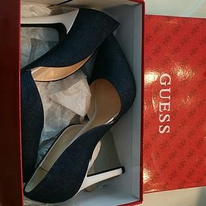 These sexy shoes haven't even been veen broken in, they're practically brand new! Denim exterior with and all white heel