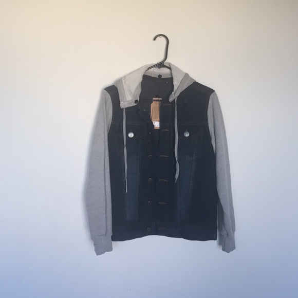 NWT Medium, real denim jacket, with grey fabric sleeves. Retail online from Jean Fashion for $70-$80. Looking for $30! Great deal, great Christmas gift, if you're buying for a male, this would work for a small-medium under 6 foot, for a woman this would fit a medium best or a large for tight fit or small for loose fit! Great deal here guys!