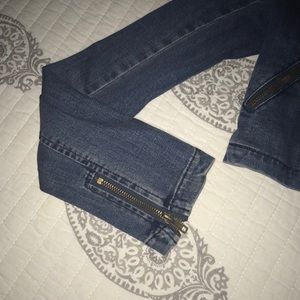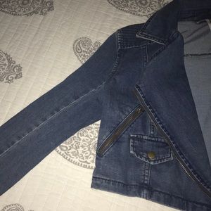 Cute denim jacket from free people, has zipper detailing on the sleeves, front side and back