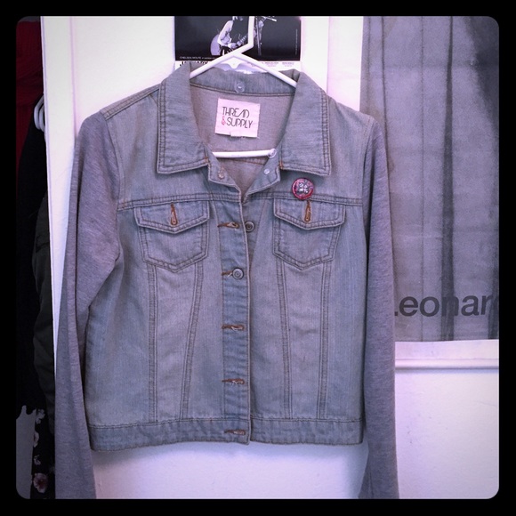 Light wash denim jacket with grey sleeves. Good condition. Pin not included.
