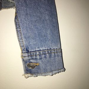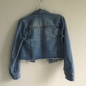Full sleeve denim jacket with frayed cuff sleeves and waist. Can be worn full sleeve or folded up for 3/4 sleeves. Only worn a couple times.