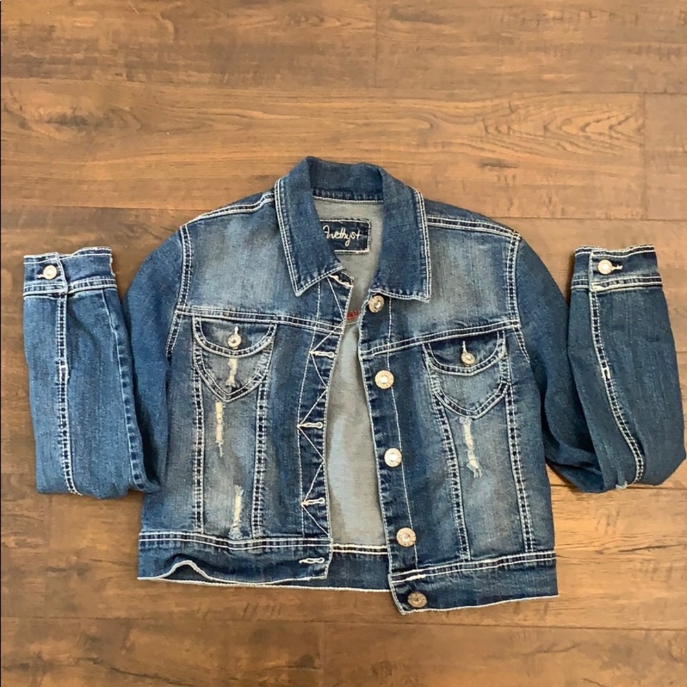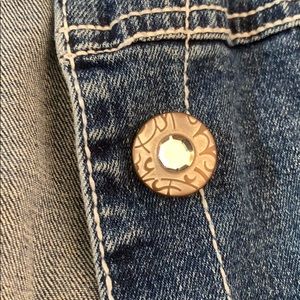 Crop jean jacket with full length sleeves!! Buttons are embedded with gems!