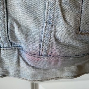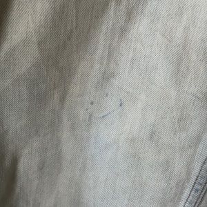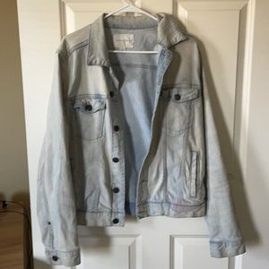 Medium denim jacket, light wash. Super soft! Small red stain on front right. Also a small inked smiley face on back. Priced accordingly. Use it to add to the character or cover it with patches and make it your own!