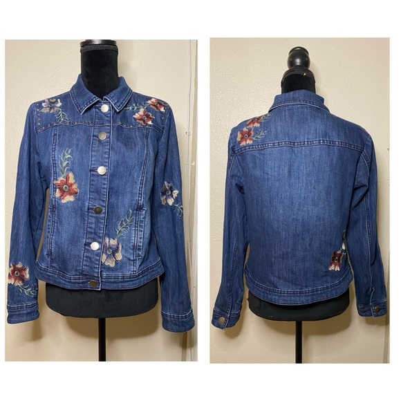 Denim jacket with flower embroidery slightly worn still like new