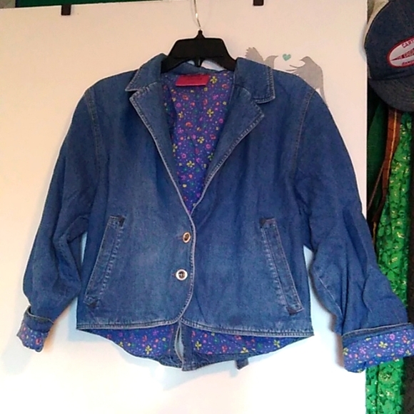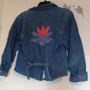 Very eclectic embroidered denim jacket with floral lining