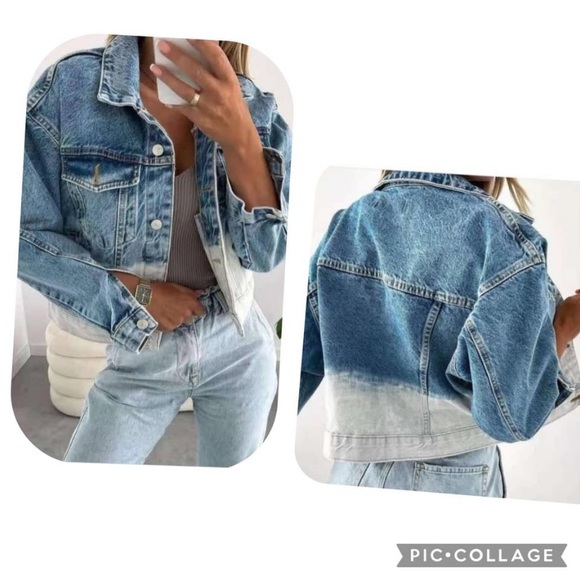 Blue denim jacket with white at bottom
