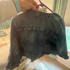 Cute collarless denim jacket quarter length sleeves smoke free home worn once