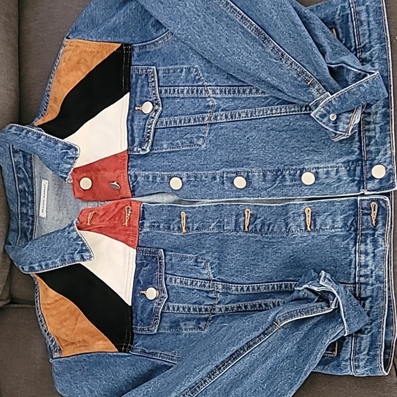 denim jacket with velvet colored stripes