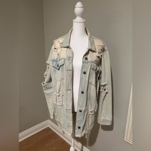 Distressed denim jacket. Oversized