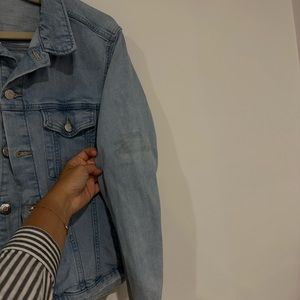 H&M denim jacket. Small details in one sleeve, might be removable ( I didnt try to clean it). size L