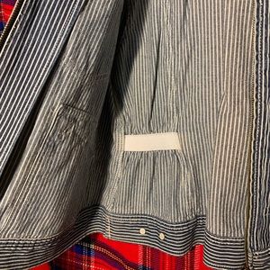 White lined denim jacket with cinched waist by Ralph Lauren, Lauren Jean Co.