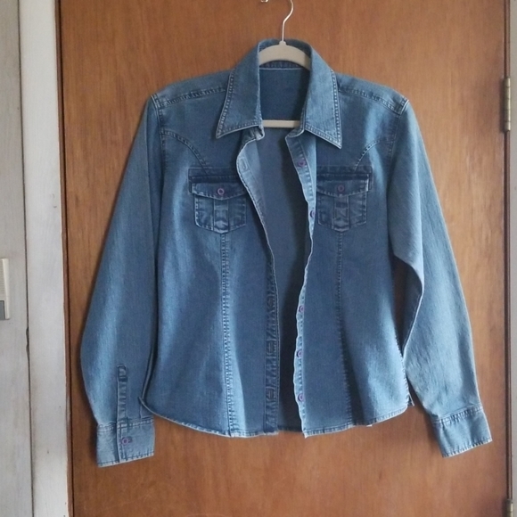 An excellent shirt style jacket the fabric is a heavy weight but not as heavy as the actual jackets fabric. Very good condition.