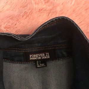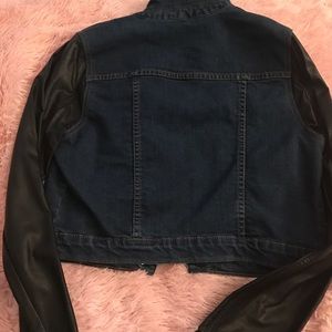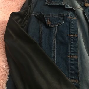 Forever 21 denim jacket with faux leather sleeves. It's a size large but fits like a size small. Lightly worn, new condition.