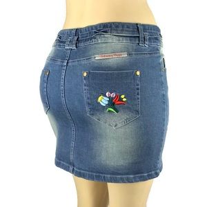 Embroidered denim mini skirt.Designed in Europe, super cute jeans skirt.Surprise your friends with these super unique embroidered jeans skirt.Limited quantity ,buy and save now.Excellent quality fabric.98%cotton 2% spandex.True to size, pics are size 27.