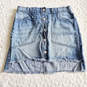 Denim mini skirt buttons light weight distressed frayed 27 4