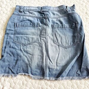 Chelsea & Violet distressed mini skirt. slightly longer in the back. button front. distressed frayed raw hem. size 17. no stretch