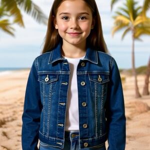Expressive girls denim patch jacket, uniquely handmade and truly one of a kind. Designed for your fashionista. Perfect for any occasion and guaranteed to set trends.Sz 10/12