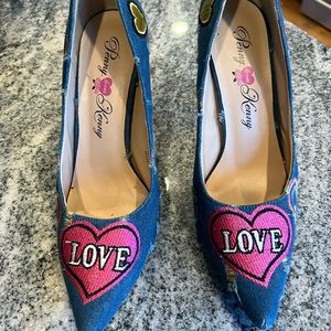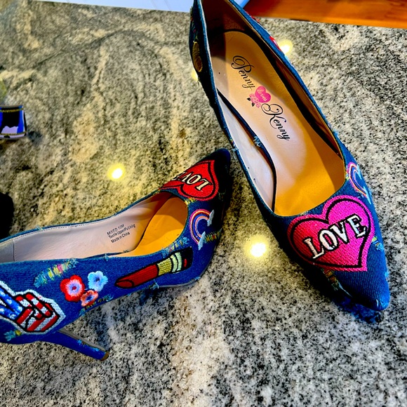 Penny loves Kenny denim patchwork heels. Size 10 Heel height 4”