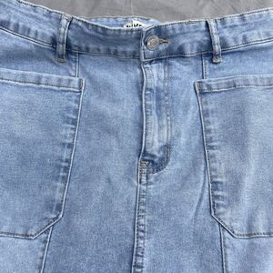 Denim pencil Jean Skirt for Women Denim Casual Stretch Patch Pockets L