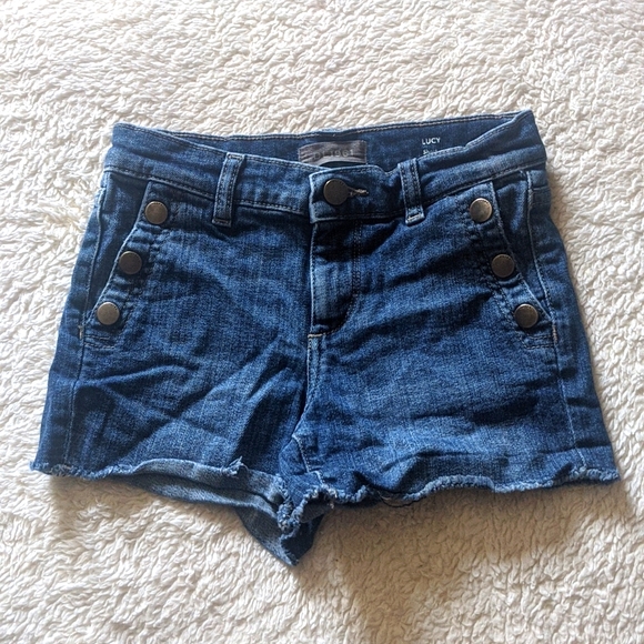 🌻Super cute girls size 8 denim shorts. excellent used condition, aside from the rolling there is no visible sign of wear. The pockets do unbutton and open and the shorts do have a little bit of stretch to them. They do not have the elastic adjustable waist in them.