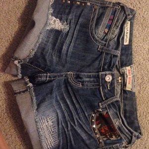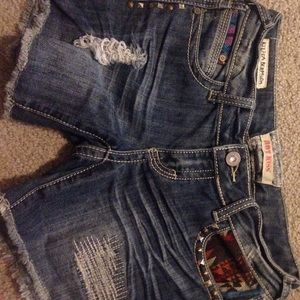 Denim shorts with studded gems and colored pattern on the pockets in great condition worn once. Size 1