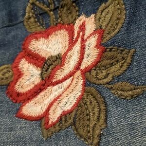 frayed, embroidered.