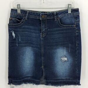 Denim skirt. Size 9 junior by Rebel by Right. Raw hem. Good used condition.