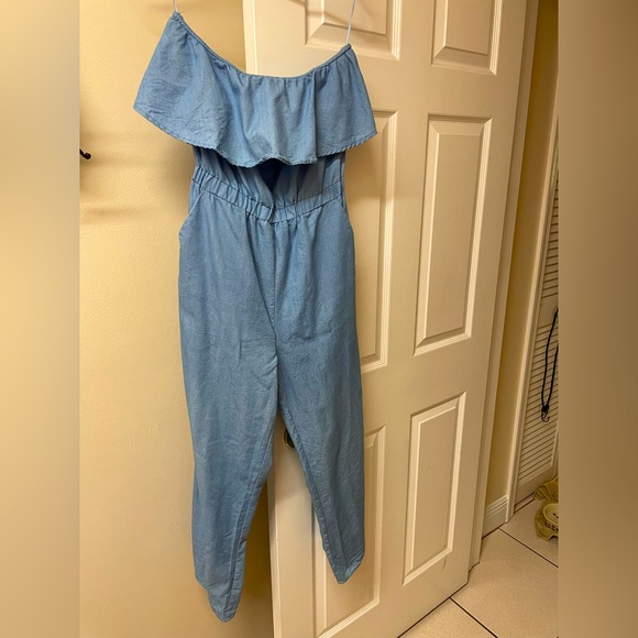 Denim sleeveless romper with pockets