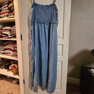 Isabel maternity denim smocked bodice maxi dress. Ankle length but I am tall at 5'9" flowy compfortable summer dress goes with everything! It's technically a maternity dress but you can't tell so this dress can go either way. New with tag, never worn.