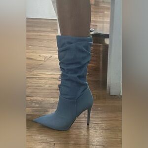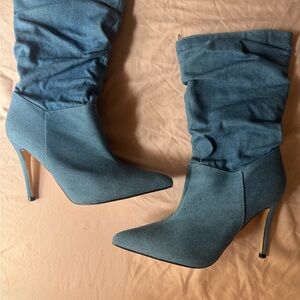 Step out in style with these chic denim stiletto boots! Featuring a sleek pointed toe and a slouchy mid-calf design, these statement heels add the perfect edge to any outfit.