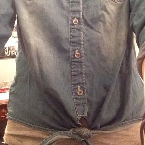 Botton down Blue denim top tie that bottom (worn once for rosey the riveter costume)