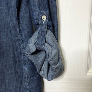 Denim button up top with pockets on each side. Sleeves are adjustable.