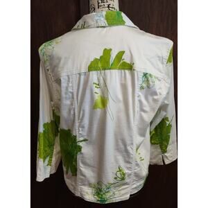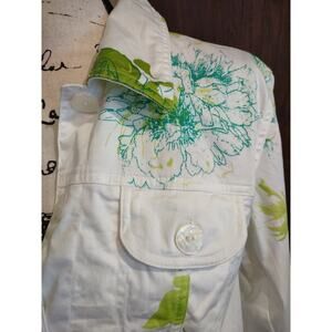 Denim top Floral Size Medium Summer Botanical Art 3/4 Sleeve White Green Jacket